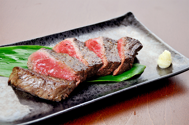 あっちゃんのお台所の看板メニュー!厚切り和牛のステーキ!程よい霜降りの和牛をさっと炙り焼き!厚切りの贅沢なステーキです!ご友人やご家族連れで来店される際は是非ご注文ください!
