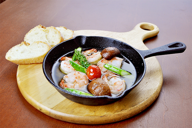 女性に人気♪海老のアヒージョは旨みたっぷりのオリーブオイルに入った海老が絶品!お酒にも合う!バケットも付きでワインに合うので是非一緒にご注文ください!